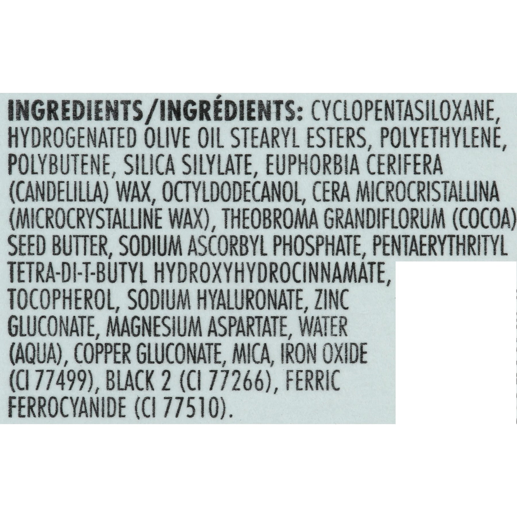 Cyclopentasiloxane, Hydrogenated Olive Oil Stearyl Esters, Polyethylene, Polybutene, Silica Silylate, Euphorbia Cerifera (Candelilla) Wax, Octyldodecanol, Cera Microcristallina (Microcrystalline Wax) , Theobroma Grandiflorum (Cocoa) Seed Butter, Sodium Ascorbyl Phosphate, Pentaerythrityl Tetra-Di-T-Butyl Hydroxyhydrocinnamate, Tocopherol, Sodium Hyaluronate, Zinc Gluconate, Magnesium Aspartate, Water (Aqua), Copper Gluconate, Mica, Iron Oxide (CI 77499), Black 2 (CI 77266), Ferric Ferrocyanide (CI 77510)./div>