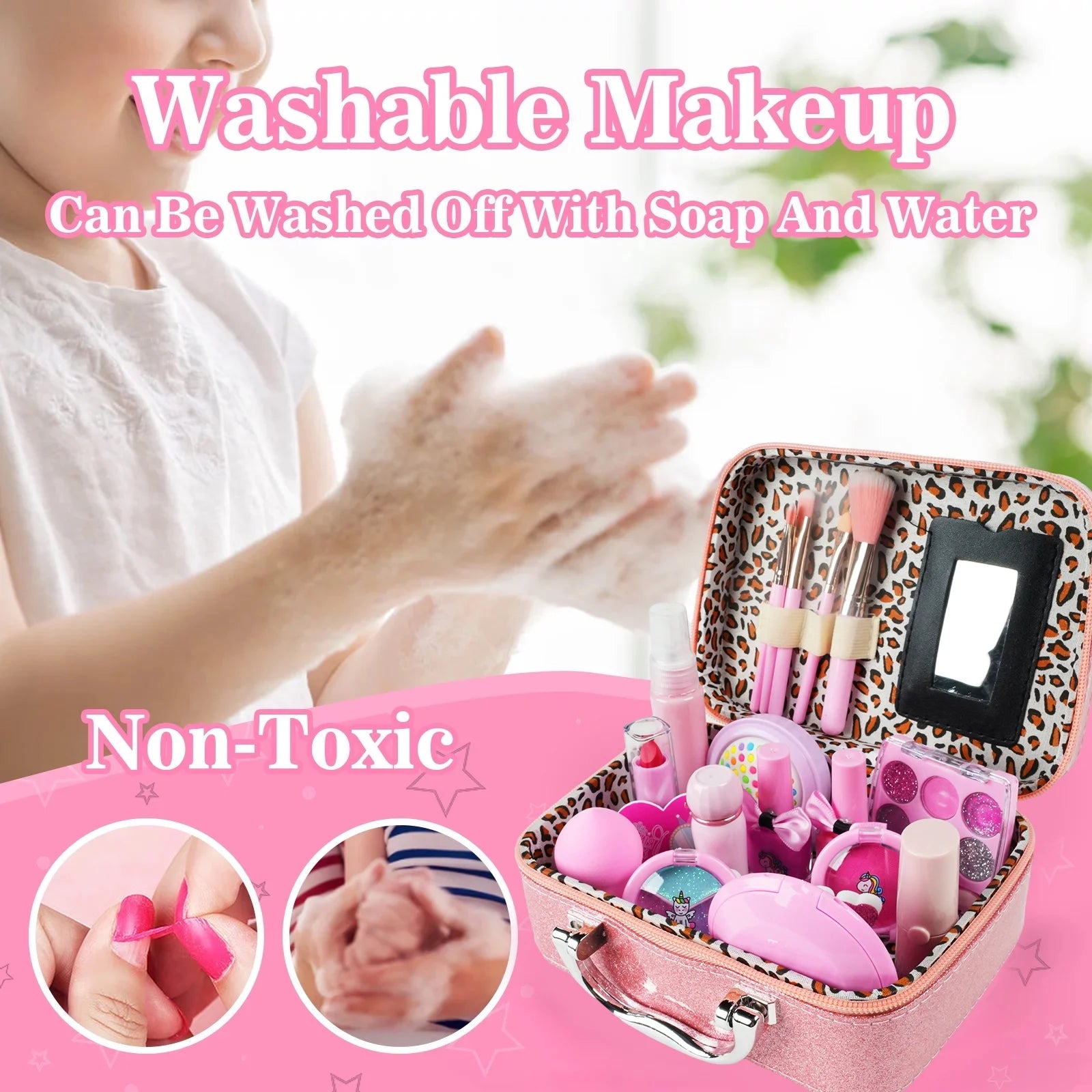 - Safe and washable makeup made from gentle, water-soluble materials that are easy to clean with soap and water, ensuring hours of safe pretend play for girls.