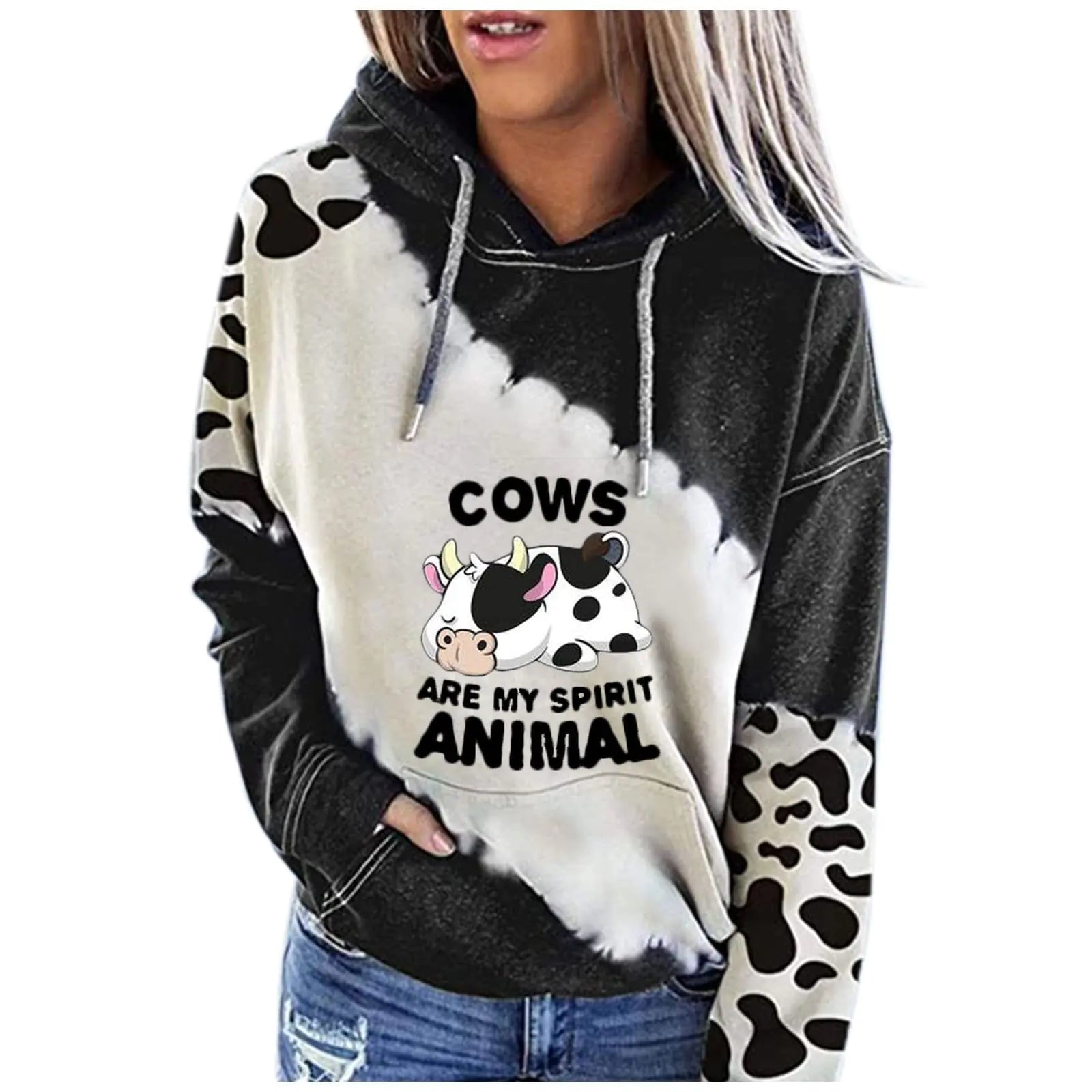 toggdipo Mooooody Cow Cute Hoodie Long Sleeve Sweatshirt with Pockets Cowhide Print Large Size Hoodie 3XL