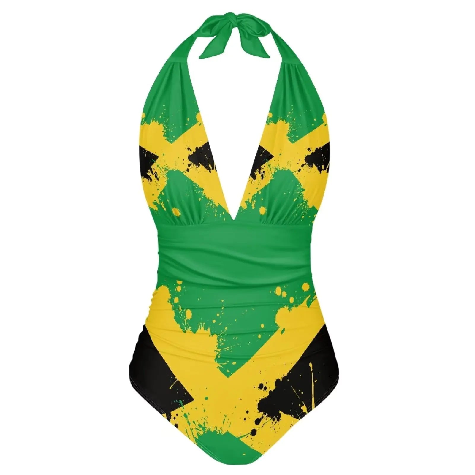 This one-piece swimsuit from Sprowallow offers tummy control with a flattering V-neck and high-cut design. Made from breathable, stretchy polyester, it ensures a comfortable fit that shapes your body. Ideal for beach, pool, or vacation, it features a halter neck and comes in various sizes and unique prints. Perfect for those seeking stylish, supportive swimwear with a creative touch.