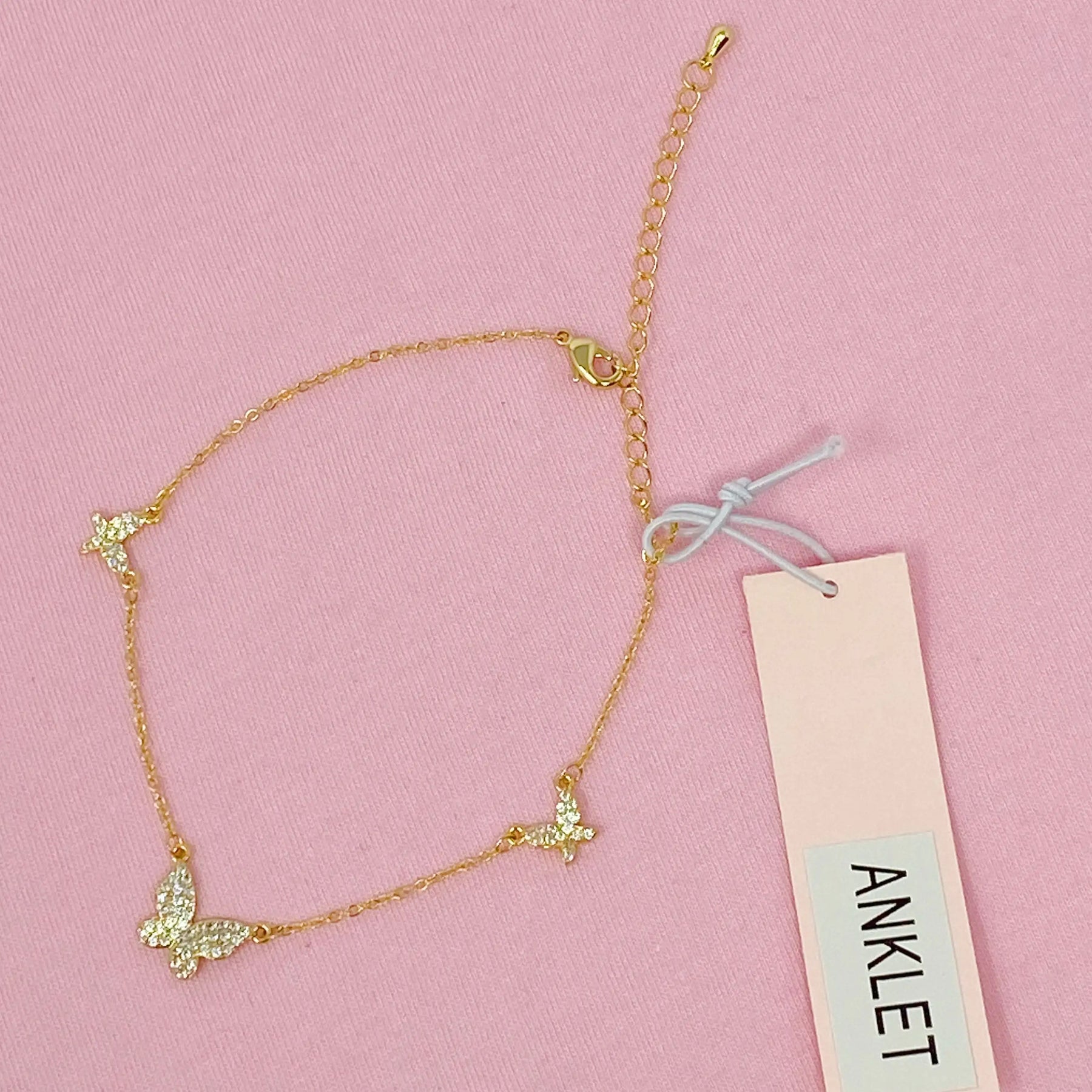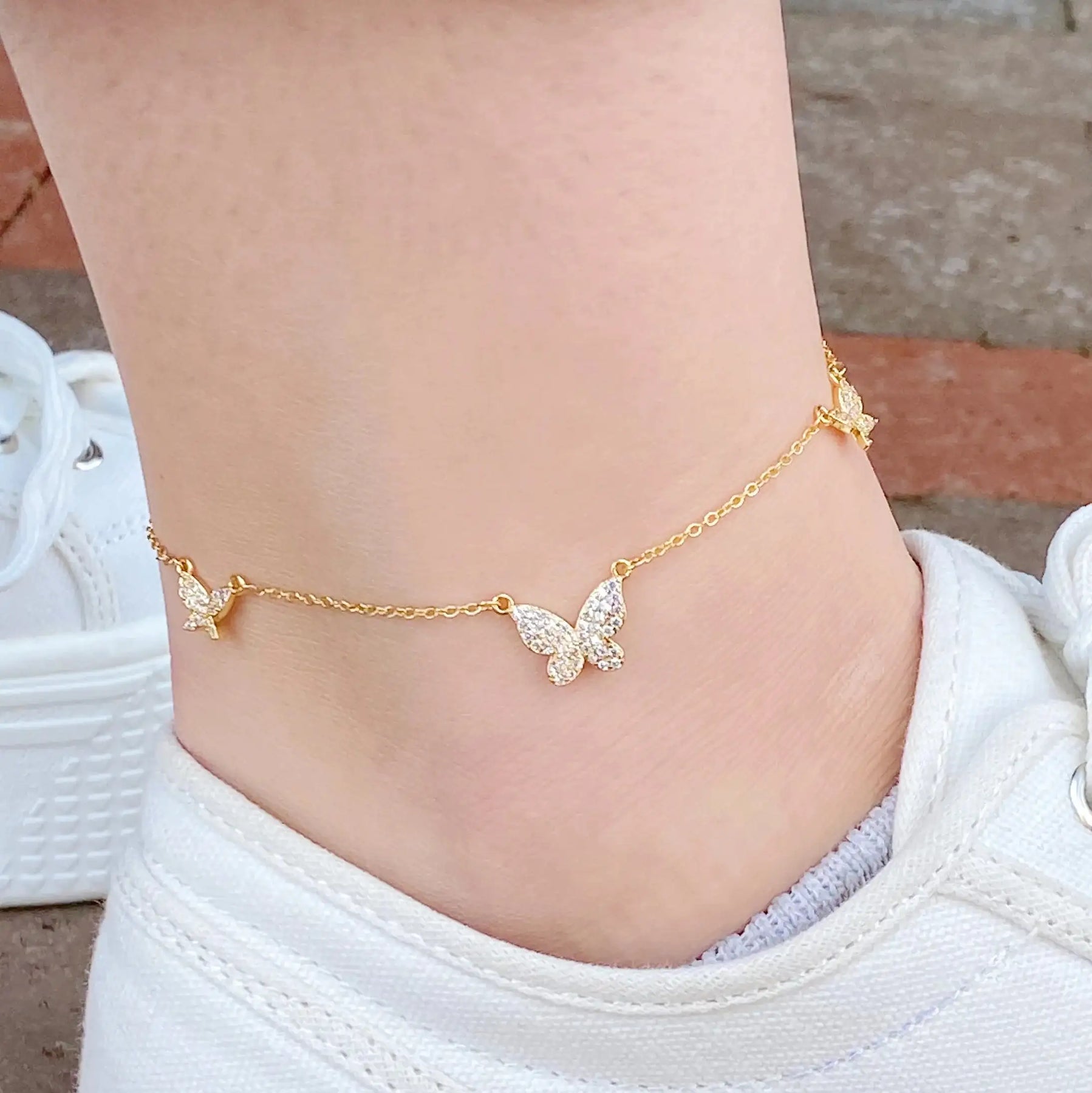 3 shiny butterflies perfectly sit around ankle and dainty chain adds more luxurious and feminine look!