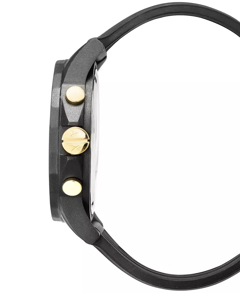 A distinctive matte black dial with gold-tone accents connects with a smooth silicone strap for this adventure-ready Outerbanks chronograph watch from A|X Armani Exchange. An iconic luggage tag joins this watch in a boxed set. Style #AX7105