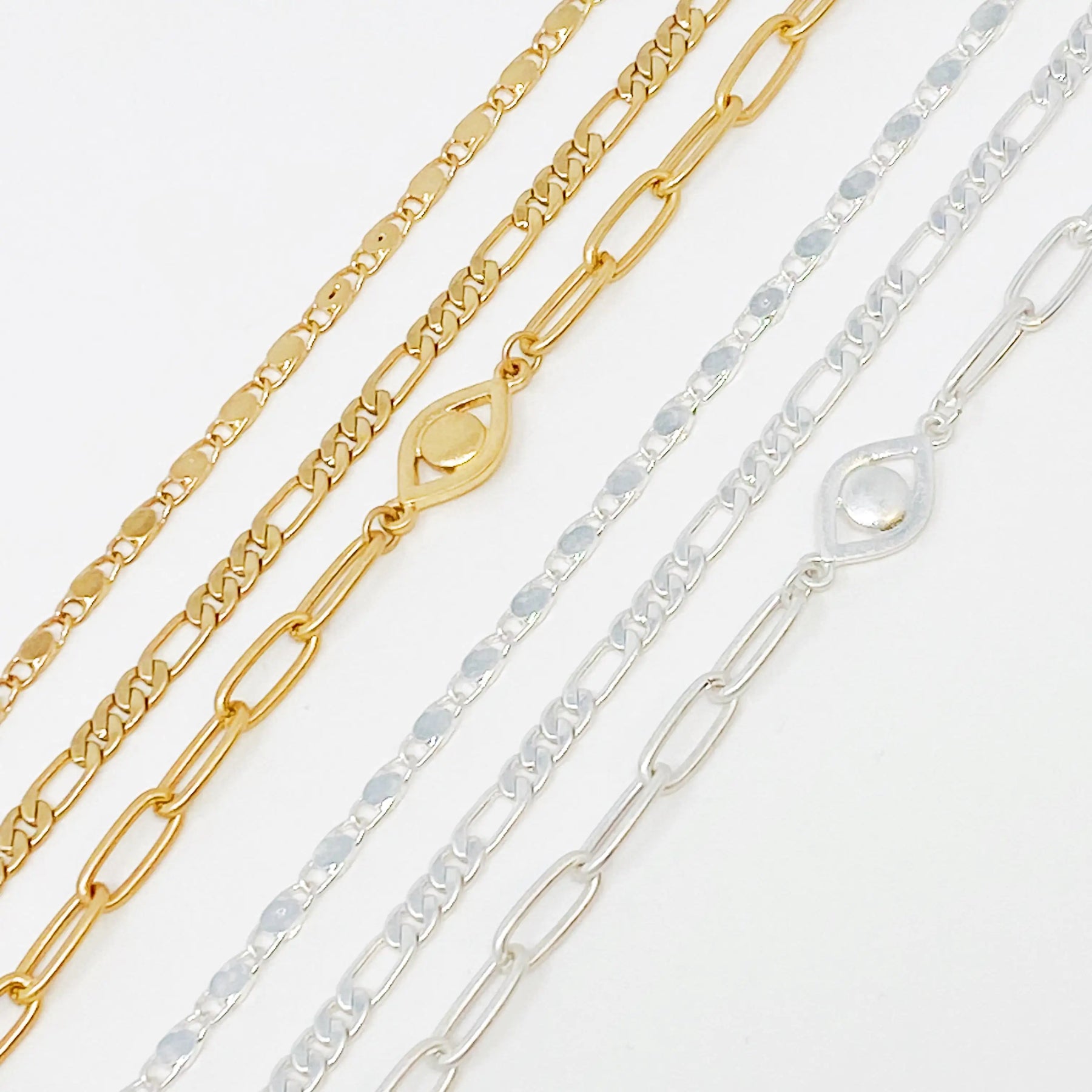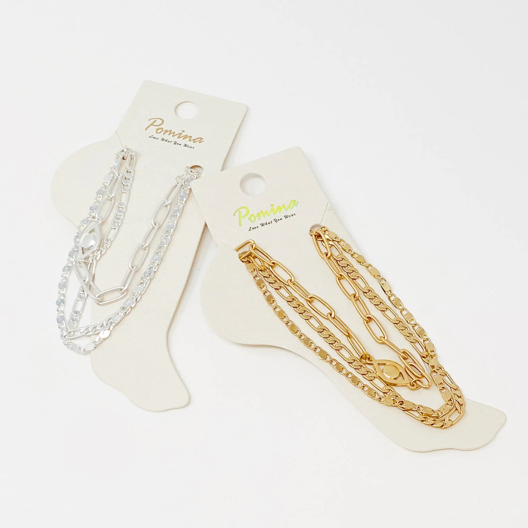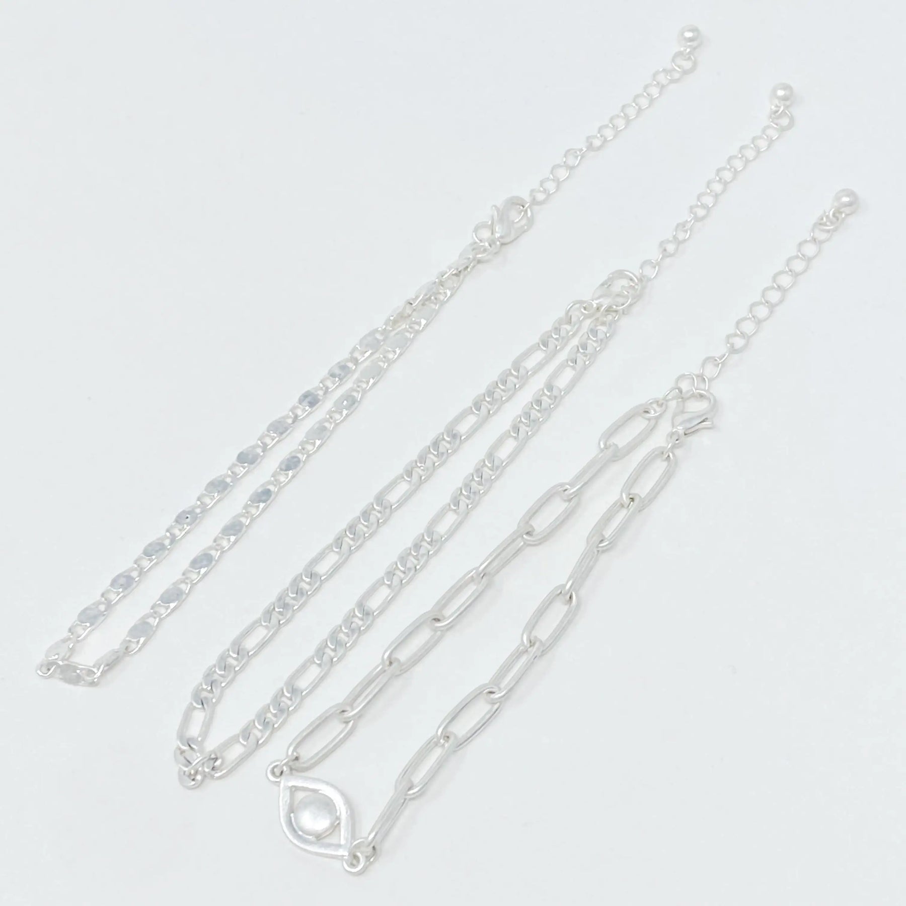 This trendy anklet set has 3 individual anklets that make perfect layers. Each anklet is pretty and has great details to wear it alone.