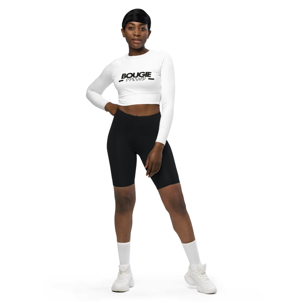 This long-sleeve crop top is made from eco-friendly recycled materials, perfect for swimming, sports, or casual wear. It features a comfy wide waist band, raglan sleeves, and UPF 50+ sun protection. Plus, the tear-away label keeps things itch-free. If you’re between sizes, go up for the best fit!