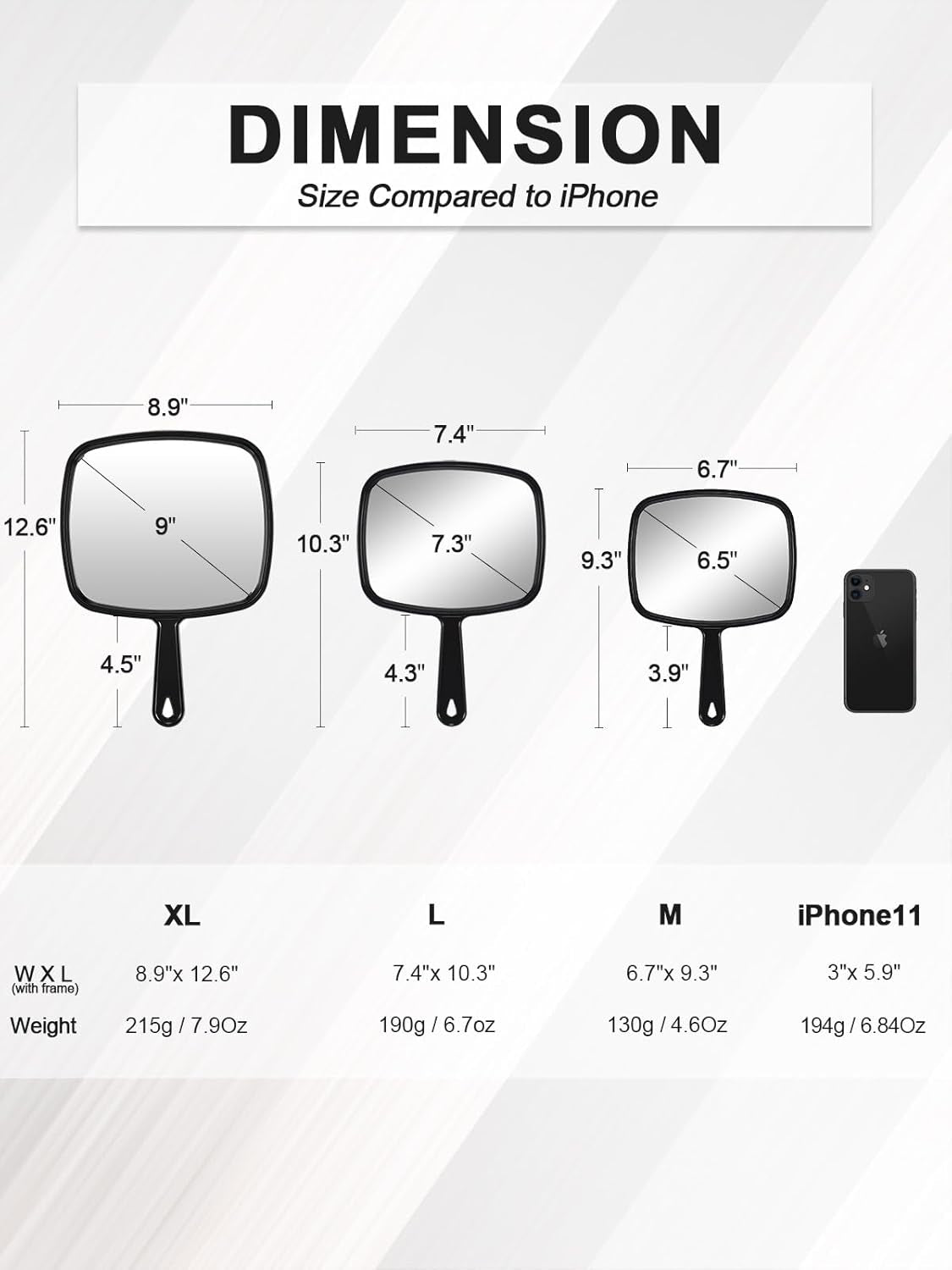 • BIGGER VIEWING AREA: 9" by 7.9" large hand mirror reflective surface, You can see your face and the back of your head at a glance