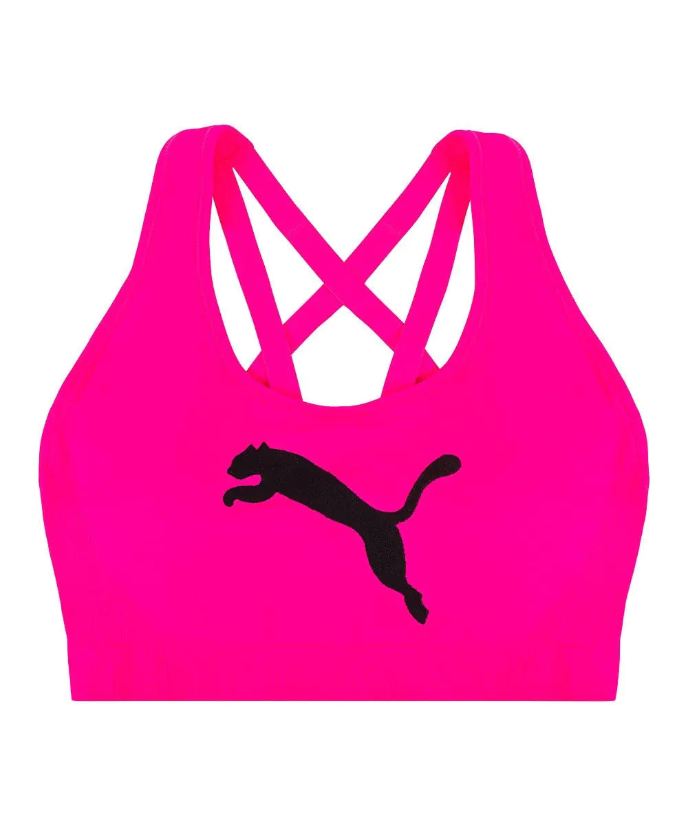 PUMA Womens Seamless Sports Bra Big Cat Pink/Black Large