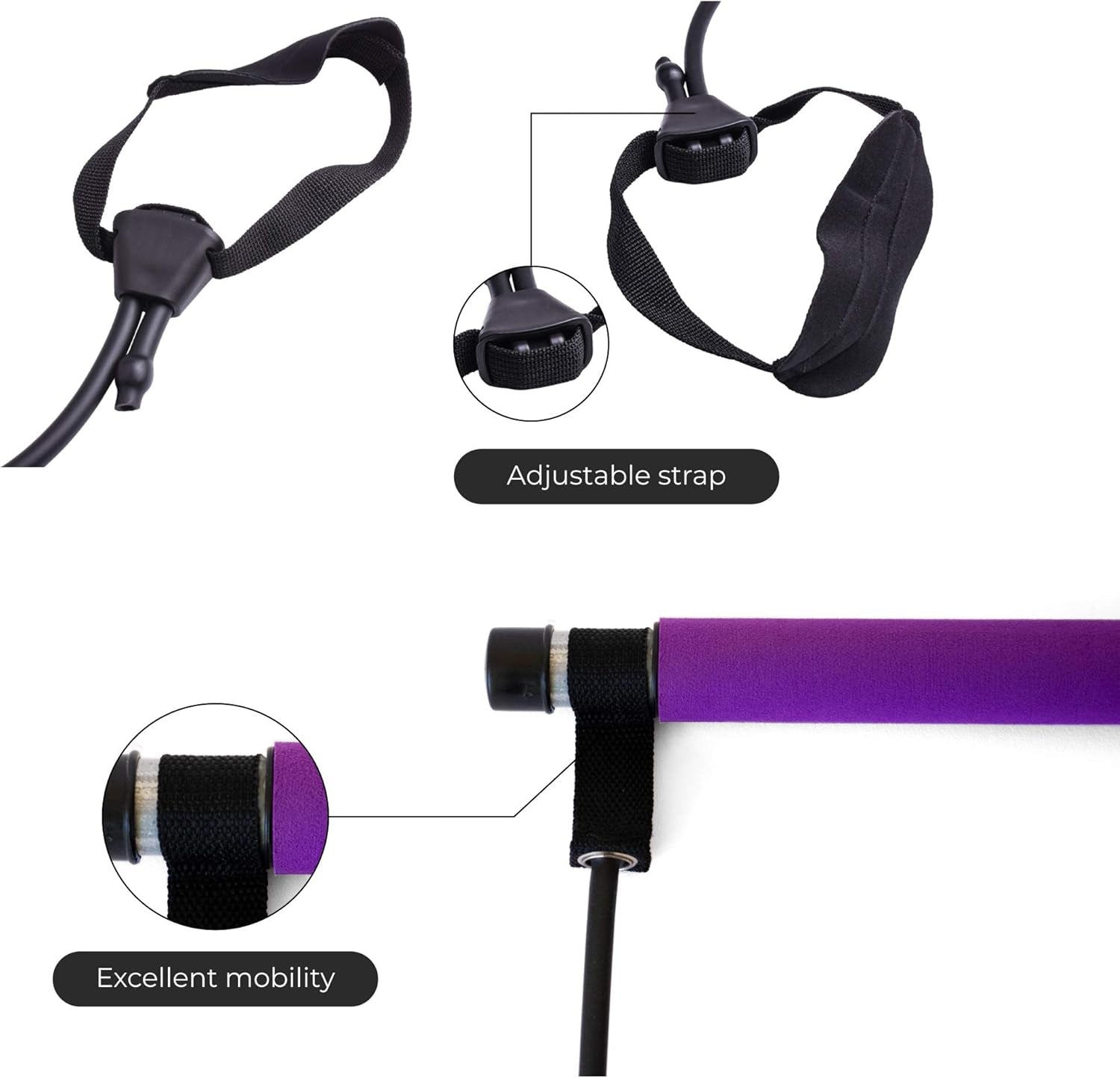 -Although the pilates bar may be lightweight, don’t underestimate its strength and durability! This powerhouse piece of equipment is made from lightweight metal and thick elastic latex to withstand even the toughest of workouts.