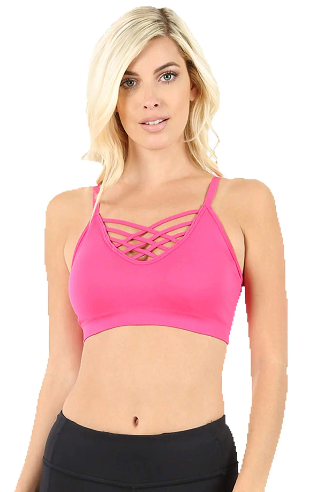 DescriptionLounge around with front strappy bra made of 92% Nylon and 8% Spandex. Seamless criss cross bra feels soft light and breathable against your skin. Elastic seamless banding firmly wraps around your chest while allows flexibility for wide range of movements. To provide perfect fitting for all types of body shapes adjustable bra straps come in handy and convenient to adjust placement of seamless bra with your shoulder length. Seamless strappy bralette allow you to match with any a scooped neck or deeply cut neck tank tops that reveal a lot of skin to transform your ordinary everyday outfits to newly upgraded casual look. Hand wash or gentle machine wash. Expect a bit of shrinkage after few washes since material consists nylon.